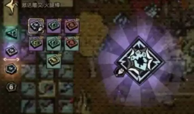 分别是:三角、四相、五边、六形,每个武器有四个放置雕文系统的位置,也可以使用【紫晶粉尘】获得【猩红粉尘】解锁;