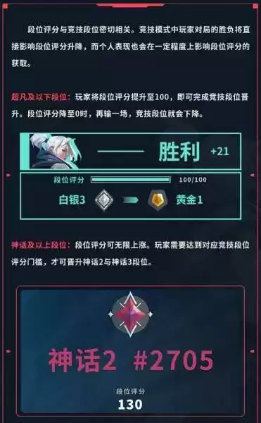 排位中的段位共分8个大段,分别是黑铁,青铜,白银,黄金,铂金,钻石,神话,耀光。