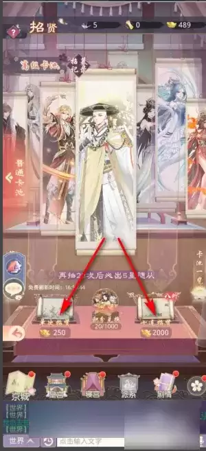 进入到【招贤】页面后点击【单次招贤】或者【十次招贤】功能。