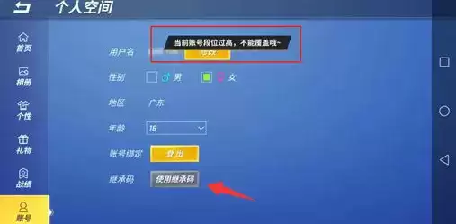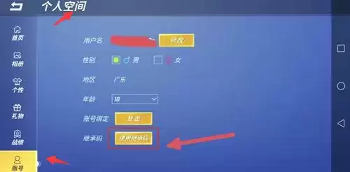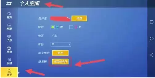 3.在新账号的个人空间,账号点使用继承码,输入继承码后可覆盖账号。