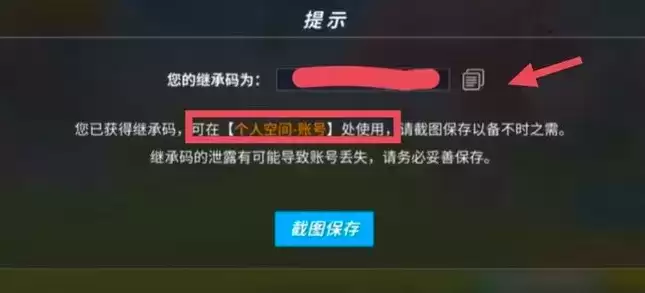2.然后复制弹出来的继承码,再登录你要绑定的号,