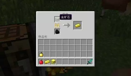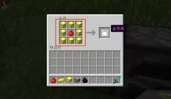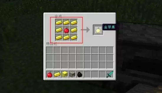 3、消耗八个金锭,再加一个苹果,合成出金苹果。