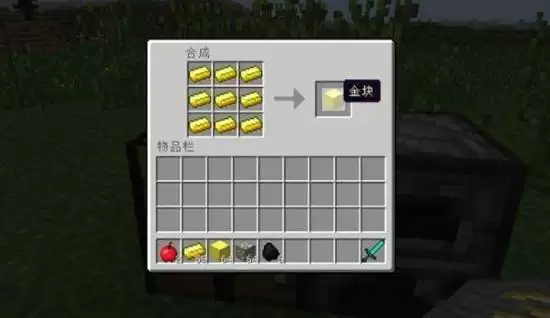 2、消耗九块金锭,放到工作台上合成一个金块。