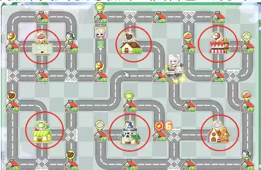 1、骑手大师小游戏界面如图,画圈的为送货点,其他为取货点,画面右边是玩家车上的货,一车最多装2个货