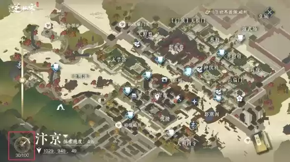 1、我们首先来到一个城市打开地图,保证右下角的熟识度达到了100。