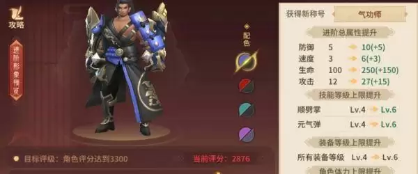 那么在达成以上的几个要求之后,玩家点击进阶界面中的按钮就可以完成操作了。在进阶之后,角色的形象不仅可以获得改变,同时属性以及技能等级上限也是可以获得提升的。