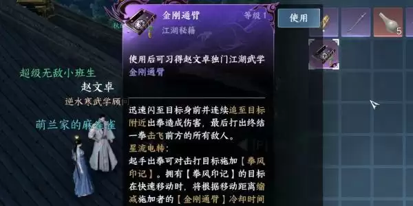 5、出示之后进行对话,对话结束之后我们就可以获得一本【金刚通臂】,任务也就完成了;