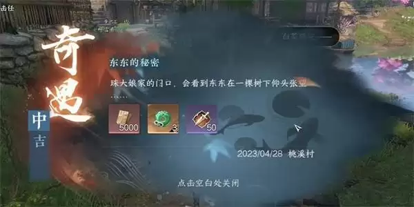 1、首先我们前往到任务地点:桃溪村【975,1121】的位置,我们与东东进行对话之后,才可以解锁该奇遇。