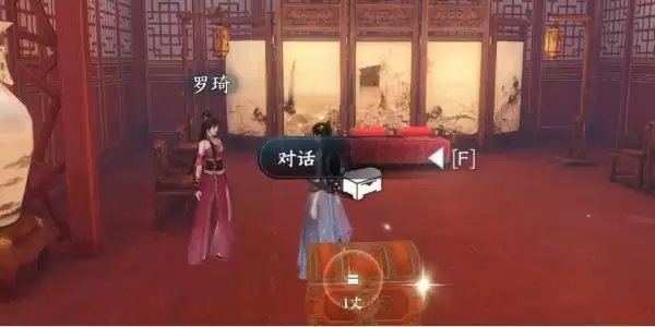 2、对话结束之后,我们根据任务的引导需要去厢房找到罗琦进行对话,对话结束后我们就可以打开宝箱了;