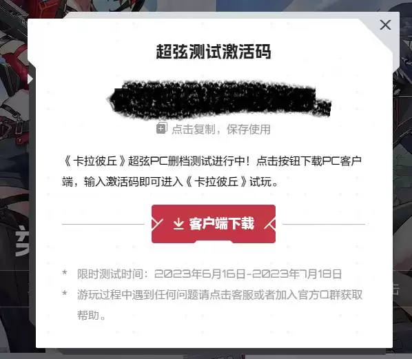 3、这样就能够得到激活码了,下载游戏客户端并进入,即可输入激活码。