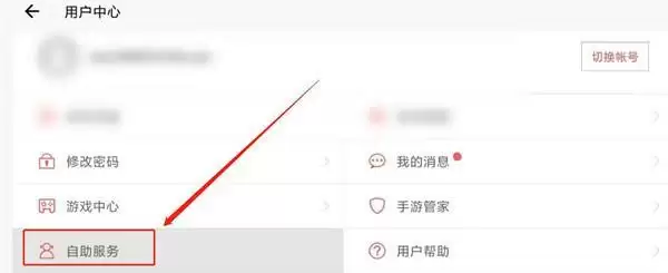 2、来到用户中心页面,点击左下角的自助服务。
