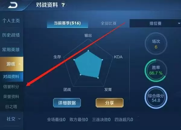 3、弹出隐藏功能栏,点击信誉积分。