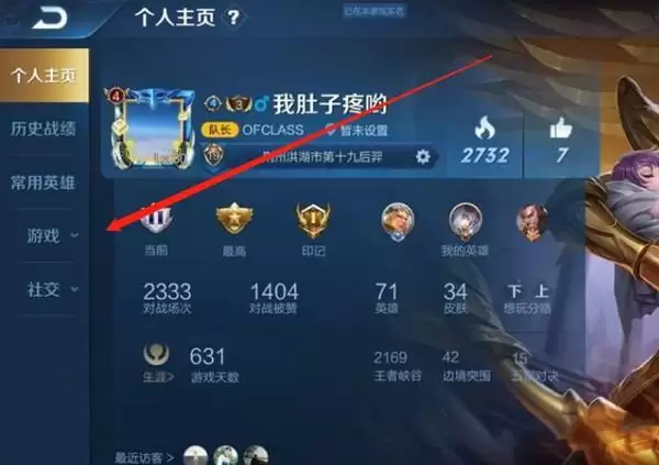 2、进入个人主页,点击左侧的游戏。