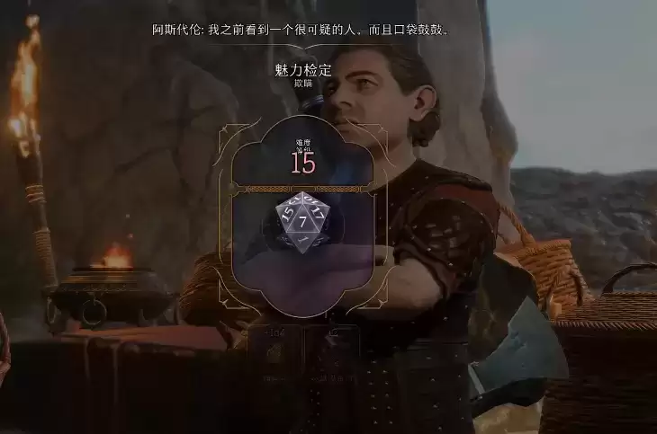 3、偷窃完之后NPC会发现,然后来找你对峙,这个时候就需要玩家想办法蒙混过关了。
