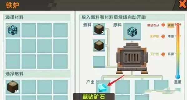 5、把钻石矿放到铁炉中,冶炼获得钻石。