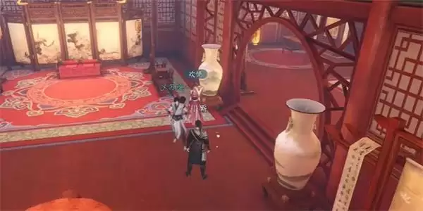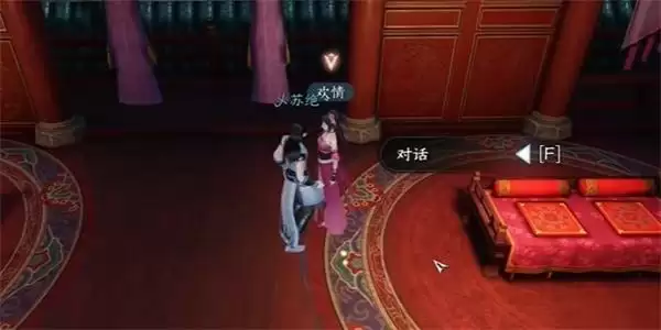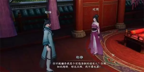 2、然后我们需要在外面看到他们还在争吵,我们需要把玉佩还给欢情,之后进入到欢情的房间里面,与她进行对话;