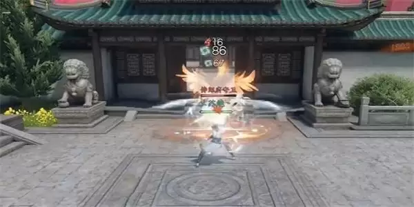 4、根据任务的引导我们来到侍郎府,找到郑公子,我们在门口会碰到侍卫,我们需要和侍卫进行对话,但是侍卫非要动武所以我们需要教训一下他!