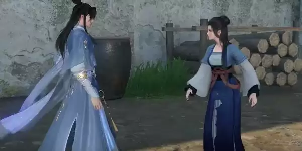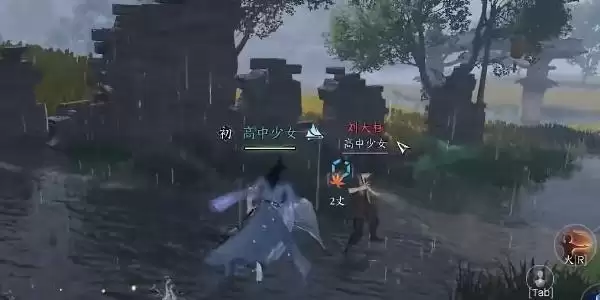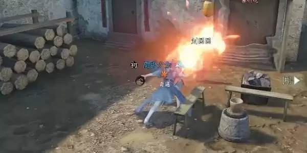 4、接着我们就可以听到,外面起了争执,我们出来查看是陈三娘与刘大柱在吵架,这时候我们就需要上去劝解,上去使用普通技能赶走刘大柱即可。