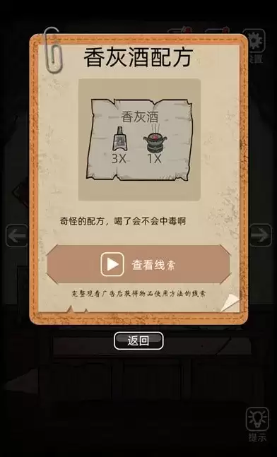 3.第二杯香灰酒需要用到香灰,所以回到楼下的大厅里 ,点击香炉获得香灰,再回到酒架开始调香灰酒,还是和之前一样,香灰酒就制作完成了;
