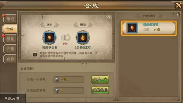 v 宝石是可以合成的,在合成界面使用3个宝石就可合成一个更高等级的宝石。