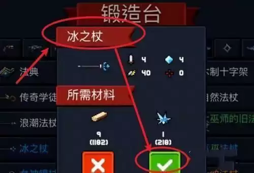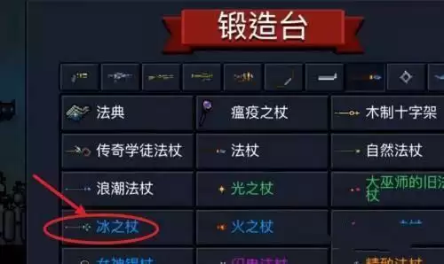 4、打开锻造台,找到冰之杖。
