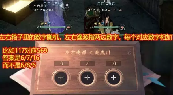 3、左右逢源提示指的是两边的数字,左右箱子里的数字是随机的,每个玩家都不一样。将每个对应的数字相加后即可得到答案。