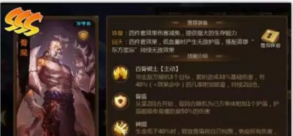 2.骨盾:从第2回合开始,每回合随机为己方单体附加1个护盾,护盾能吸收骨魔防御50%的伤害。
