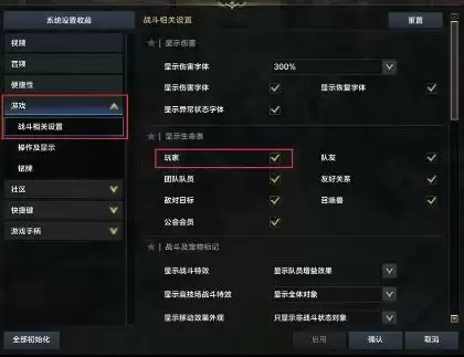 1、我们在设置中,点击战斗相关的设置,将显示生命条全部开启。