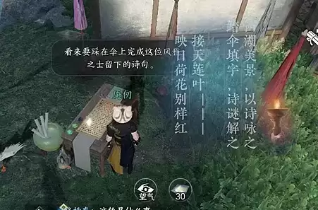 获取方法:来到杭州(1136,1385)位置,触发桌子,补全诗句,按照顺序跳在雨伞上即可获取。
