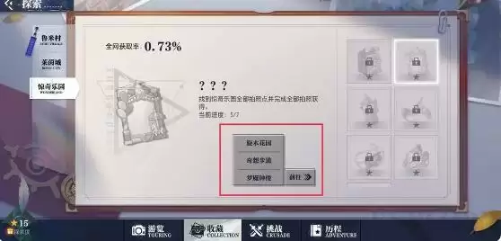 地点:打开探索收藏,点击拍照进度,就可以快速的前往到惊奇乐园地图中。