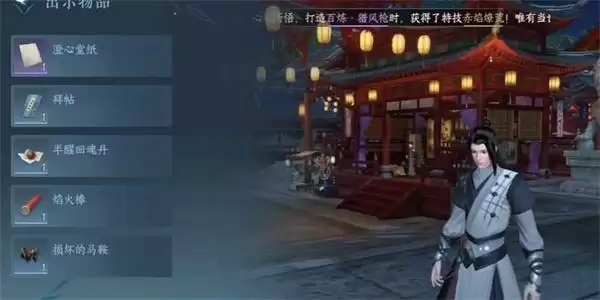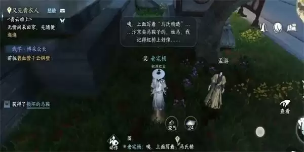 2、在对话途中,我们就捡起周围闪光点地方的物品,就可以获取到损坏的马鞍。