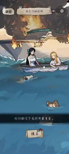 3、找其我们需要的东西后,会弹出选择框,(提示:在这里我们不管选择谁都会显示任务失败)这时我们需要把右上角的小船向左滑出,把前妻和现任放进去任务通关。