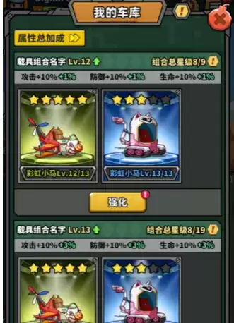 本次版本更新后,载具升星可以增加基础属性与随机高级属性。其中非节日活动限定载具需要消耗同品质载具进行升星,节日活动限定载具仍需消耗同名载具。越高星级的载具,战力加成更为突出。是时候狂飙一波战力啦!