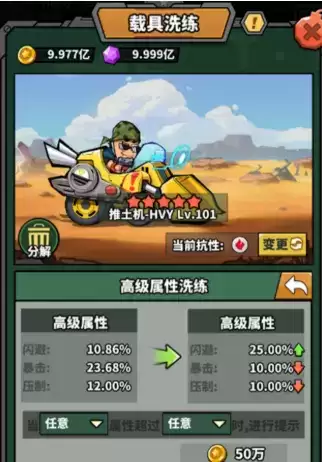 更新后,虫宝还可通过消耗金币或钻石,重新随机载具高级属性。用心培养载具属性,相信大家的实力会更上一个台阶!