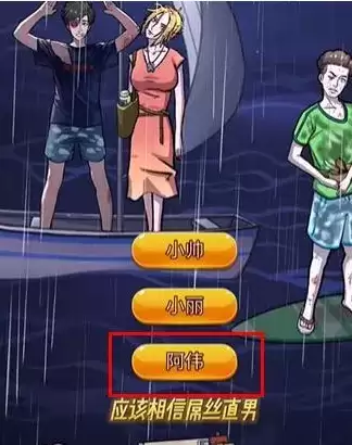 5、我们在之后弹出的选择框中选择阿伟,因为其他人都是想让女主死。