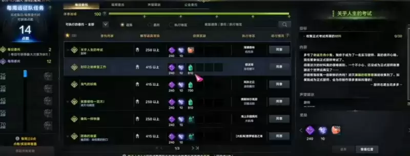 3、日常全都是需要耗费一定精力的,推荐选择收集类型的任务,不会因为暴毙而增加时间成本。