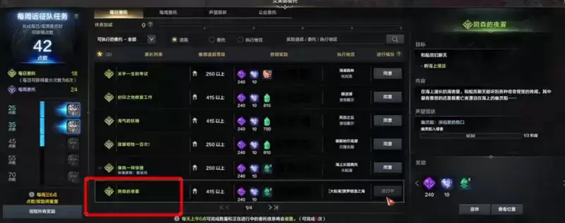 1、幽灵船的前置任务需要我们去每日委托中找到阴森的夜雾这个任务,然后选择同意接取。