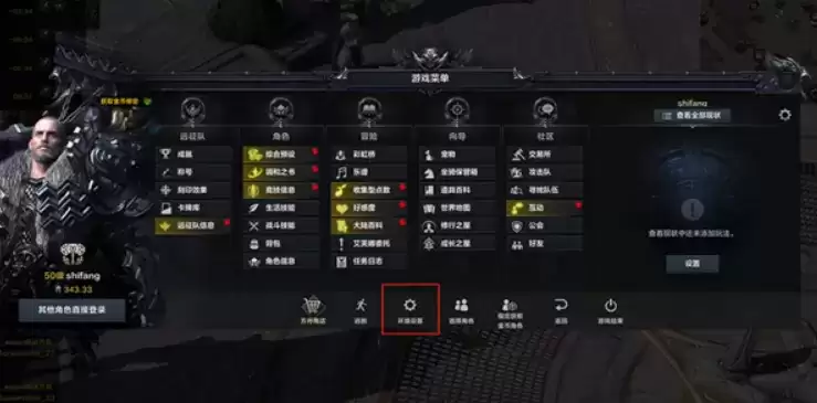 1、首先我们打开游戏菜单,点击下方的环境设置。