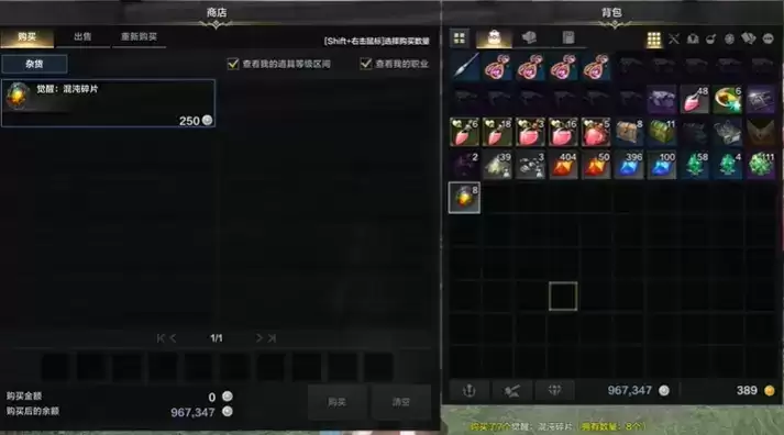 3、购买足够的混沌碎片,以确保短时间不会消耗完,最好常备个几百个,因为在副本中用量很大。