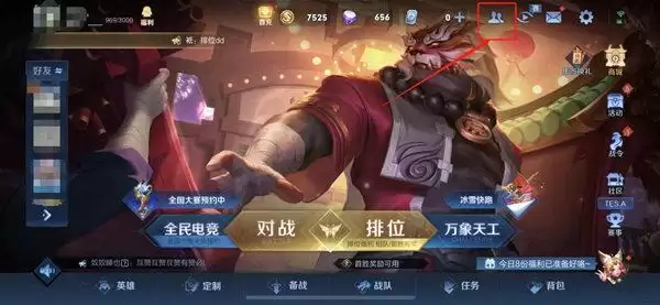 1、进入王者荣耀游戏大厅,点击上方的【好友】。