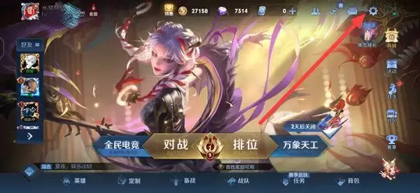 1、登录王者荣耀,点击主界面右上角的【设置】。