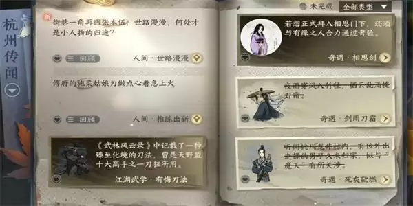 1、首先我们前往到杭州【986,850】的位置,与NPC进行对话,就可以解锁该传闻了。
