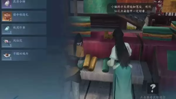 4、然后对话结束之后,我们就可以获得道具【凤仙花】,我们交给绾儿,然后对话结束后,任务也就完成了;
