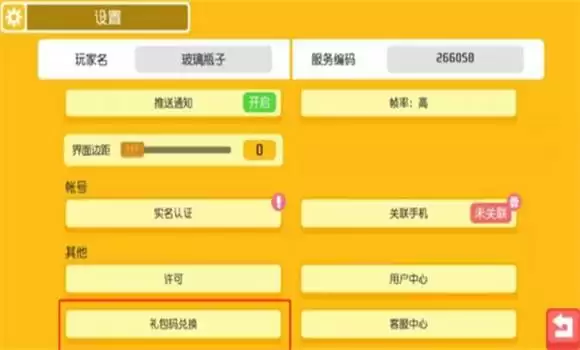 2、进入到设置页面我们点击右下角的【礼包兑换】的功能选项,点击进入。