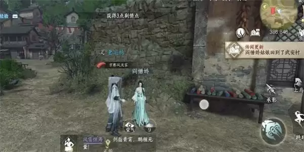 3、不久之后,我们在来到颜红阁寻找到NPC,得知NPC回到了武安村。
