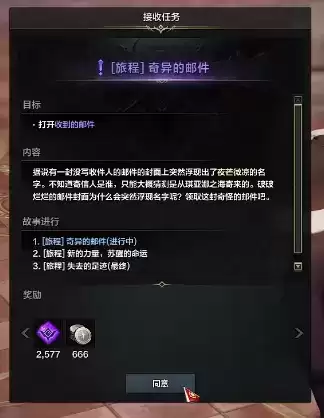 答:完成洛恒戴尔大陆的主线任务后在洛亚伦的邮递员森托斯处开启任务