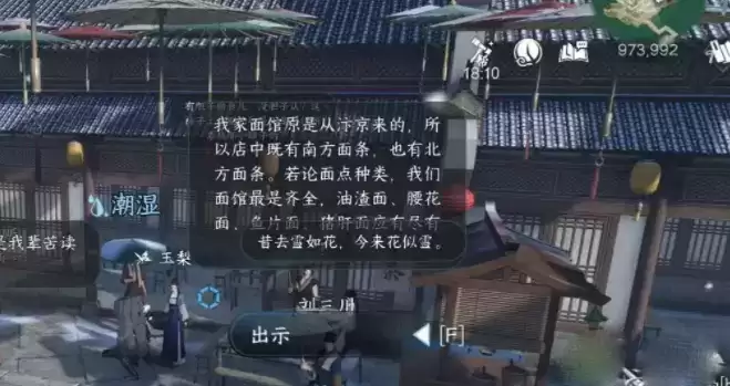 3、到杭州973.992处向“玉梨”提交“玉坠”并对话,选择“沉默不语”对应结局“一切如故”,选择“你快逃吧”对应结局“雪融之后”