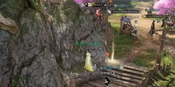 1、首先我们需要来到上述桃溪村的位置。来到之后我们就可以看到光柱,然后靠近就可以触发任务;
