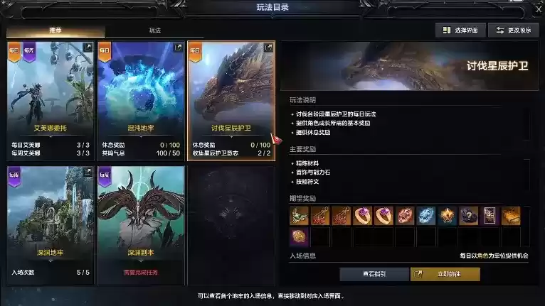2、在这里有一个讨伐星辰护卫的副本,这个副本中是可以掉落星辰护卫意志的。