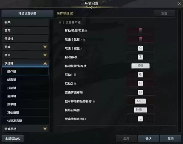 2、这里的左边一排可以看到快捷键,其中有个操作键的选项,点击即可看到设置拾取的快捷键了。